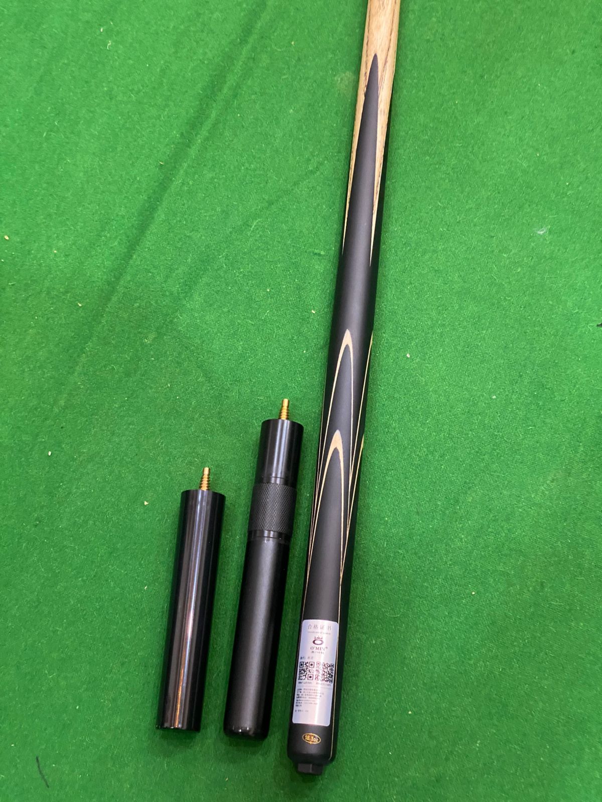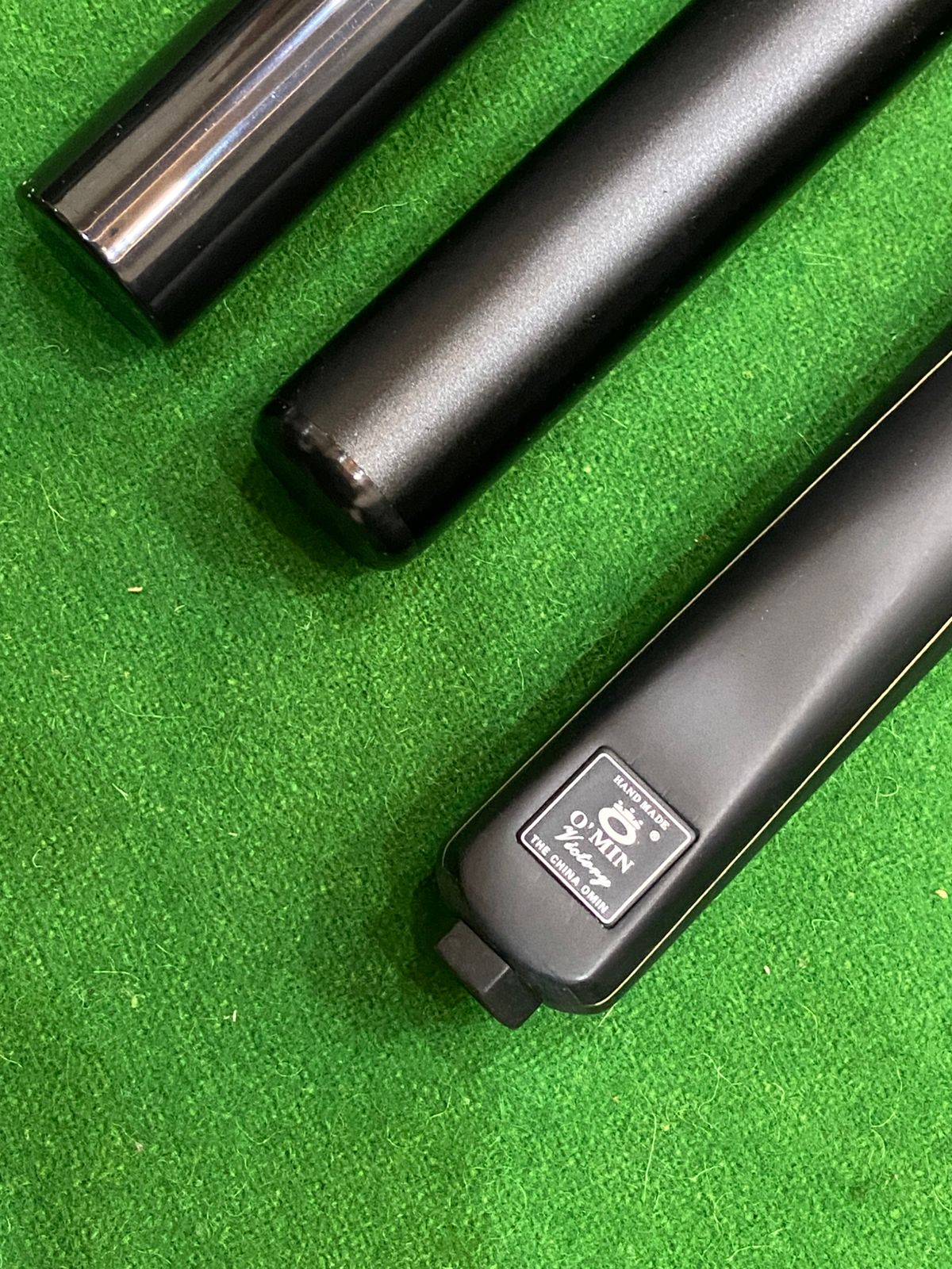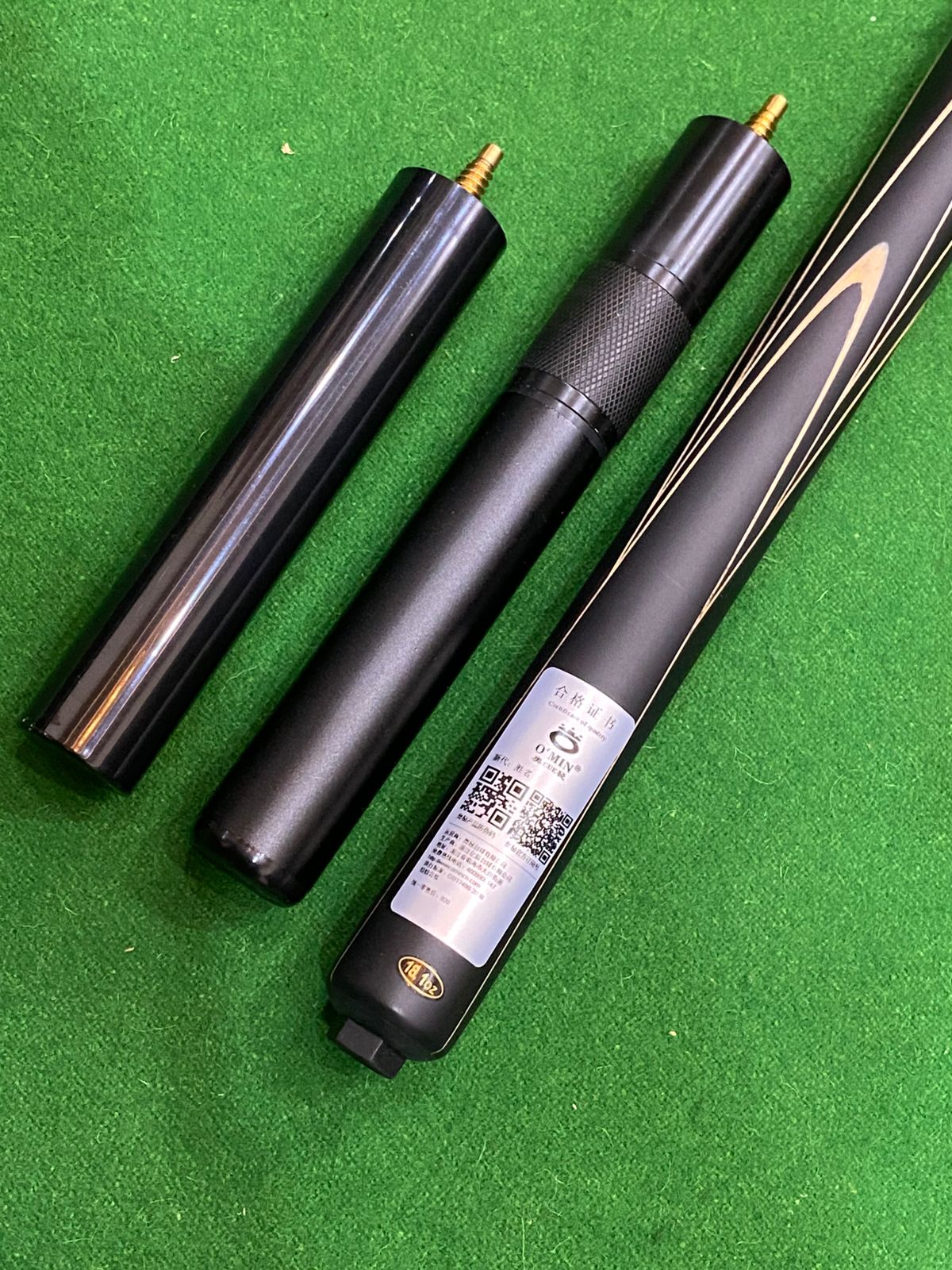 The Omin Victory cue is a high-quality snooker cue manufactured by Omin, primarily made from premium ash wood, designed to offer consistent performance and a balanced feel for players of all skill levels, featuring a standard 57-inch length, 9.5mm tip size, and a sleek design with multiple splices for a secure grip; often sold with a telescopic extension for customization of cue length and weight.