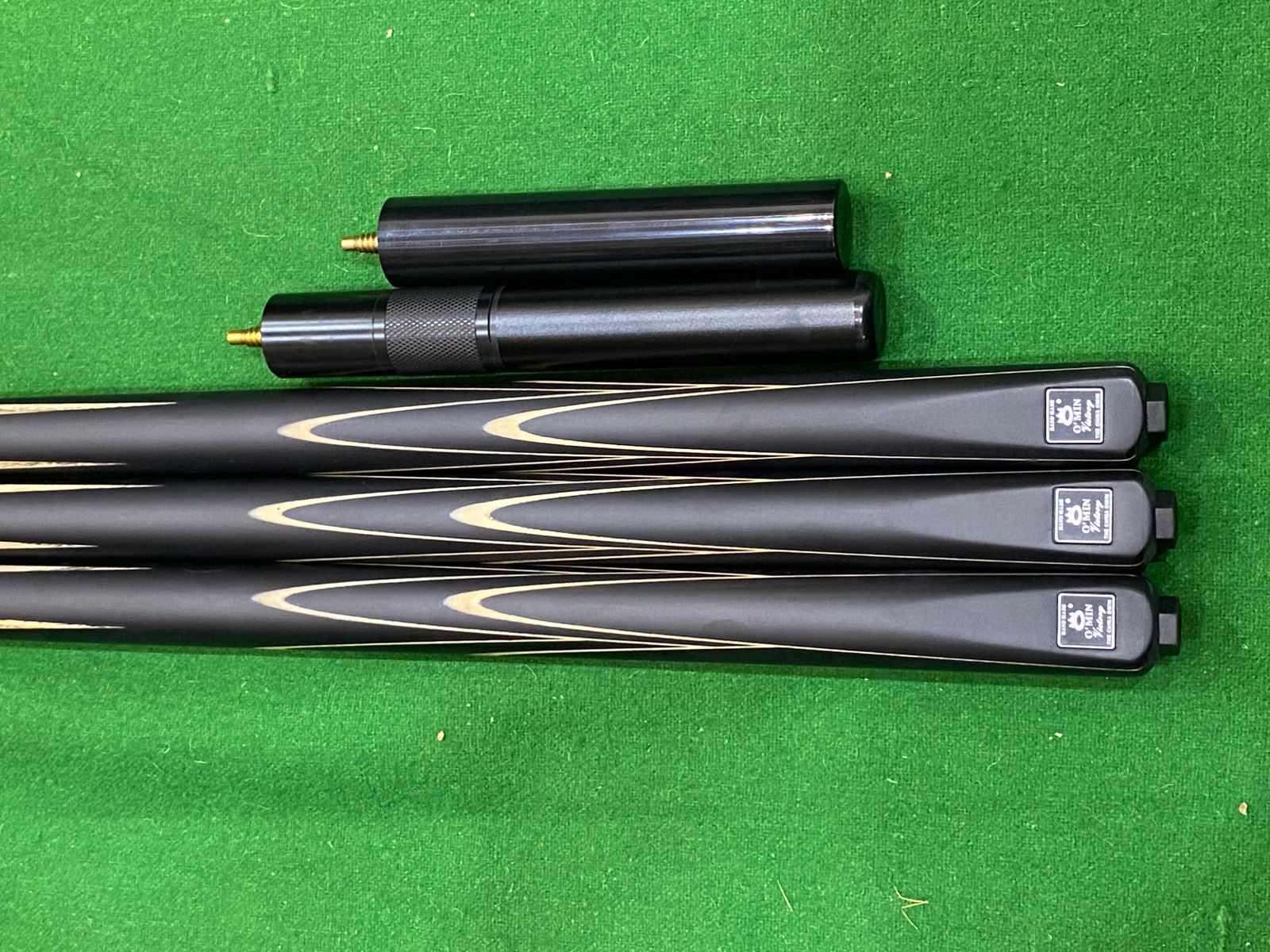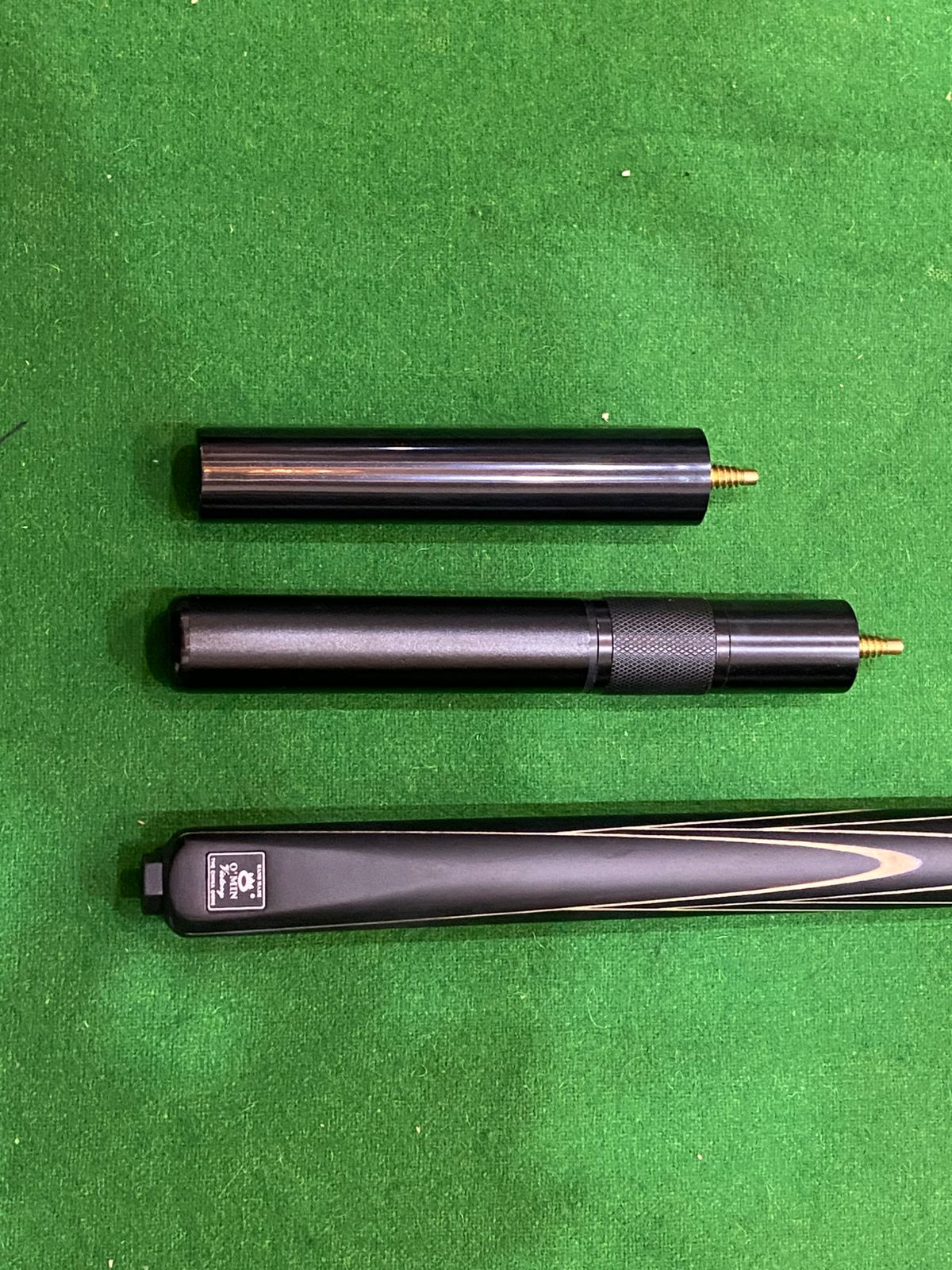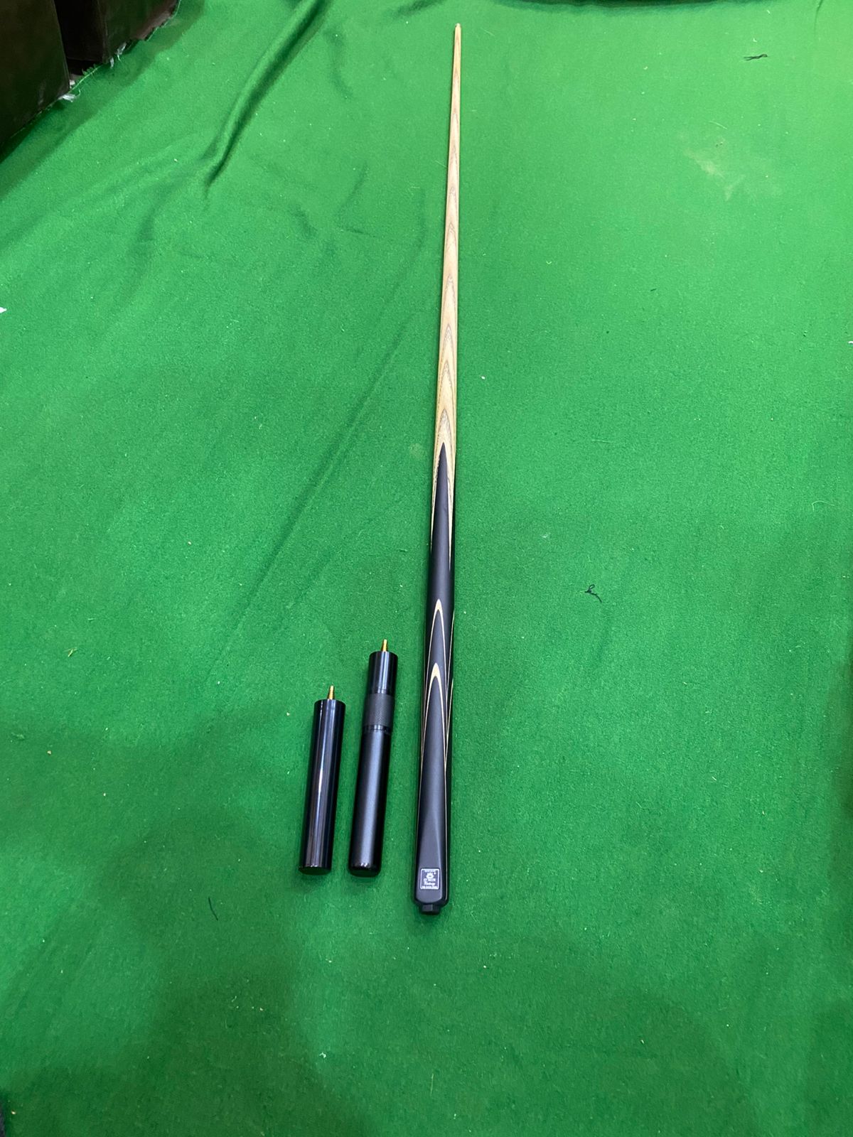 The Omin Victory cue is a high-quality snooker cue manufactured by Omin, primarily made from premium ash wood, designed to offer consistent performance and a balanced feel for players of all skill levels, featuring a standard 57-inch length, 9.5mm tip size, and a sleek design with multiple splices for a secure grip; often sold with a telescopic extension for customization of cue length and weight.